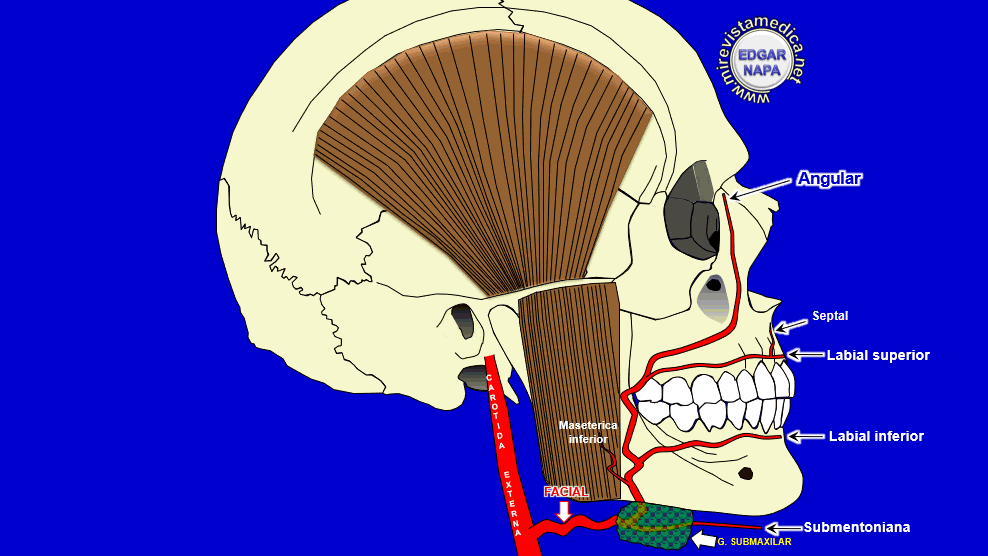 - Arteria cigomático-orbitaria.- se anastomosa con la Arterias palpebrales internas (rama de la arteria oftálmica ).