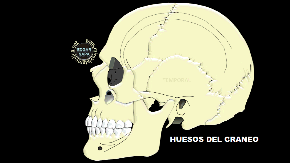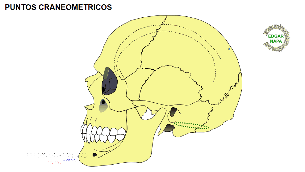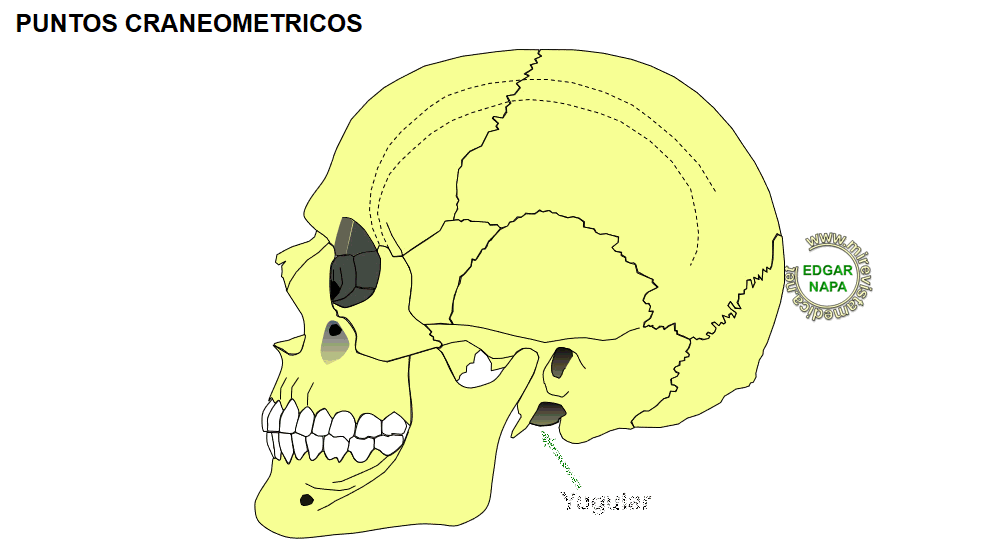 • Pterica, unión de hueso frontal, alas mayores del esfenoides, porción escamosa del temporal y parietal.