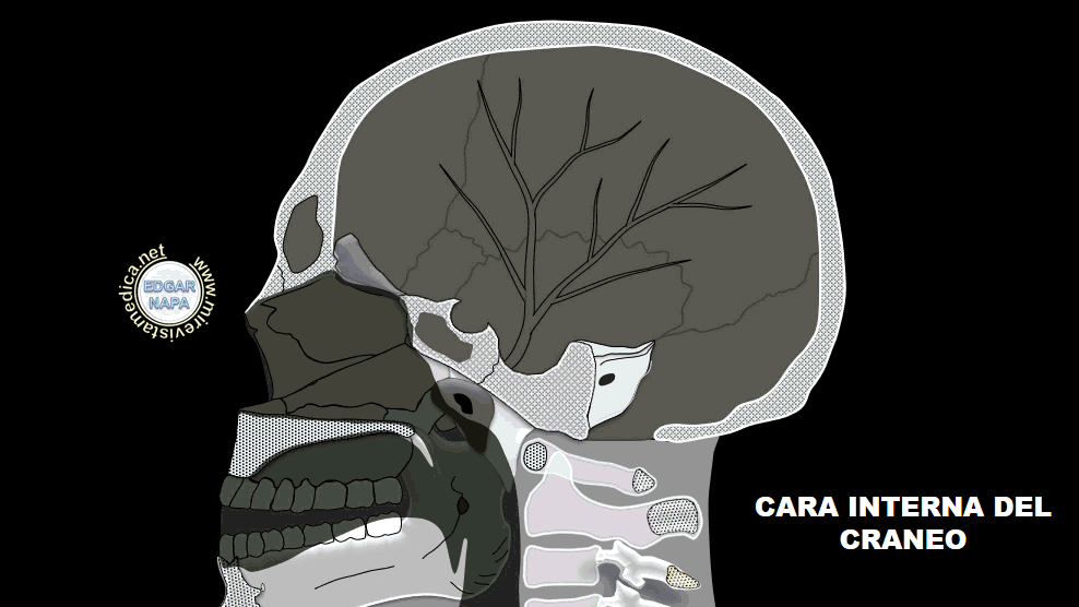 • Los cóndilos de la mandíbula forman la articulación temporomandibular . Cuando se retira la mandíbula, el cráneo presenta: base y calota o bóveda.