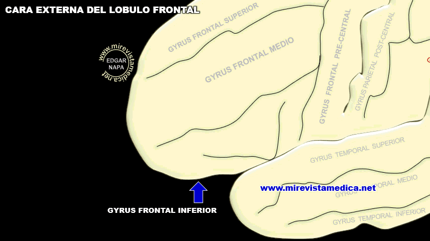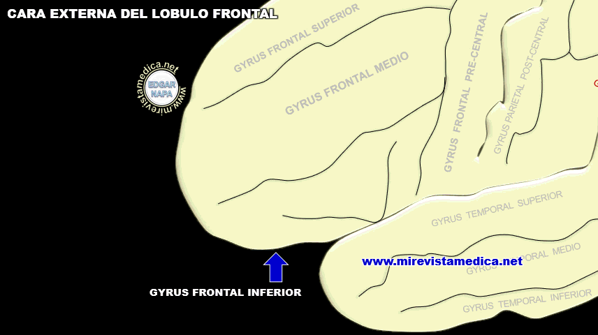 La circunvolución frontal inferior esta dividida por la rama horizontal y ascendente de la cisura lateral.