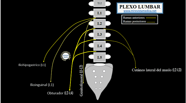 Emite ramas musculares cortas para los músculos de la cadera, llamados músculos psoas mayor y menor (L1-L5), el músculo cuadrado lumbar (T12-L3), y los músculos intercostales lumbares.